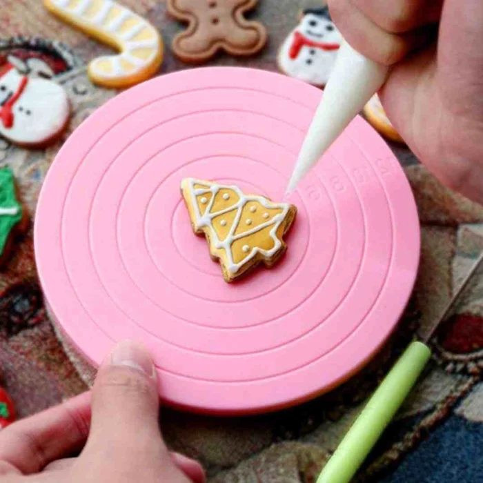 Baixa, com 1,3cm de altura, e com rotação bem macia de 360°, esta é uma ferramenta essencial para quem faz biscoitos decorados ou mini bolos.