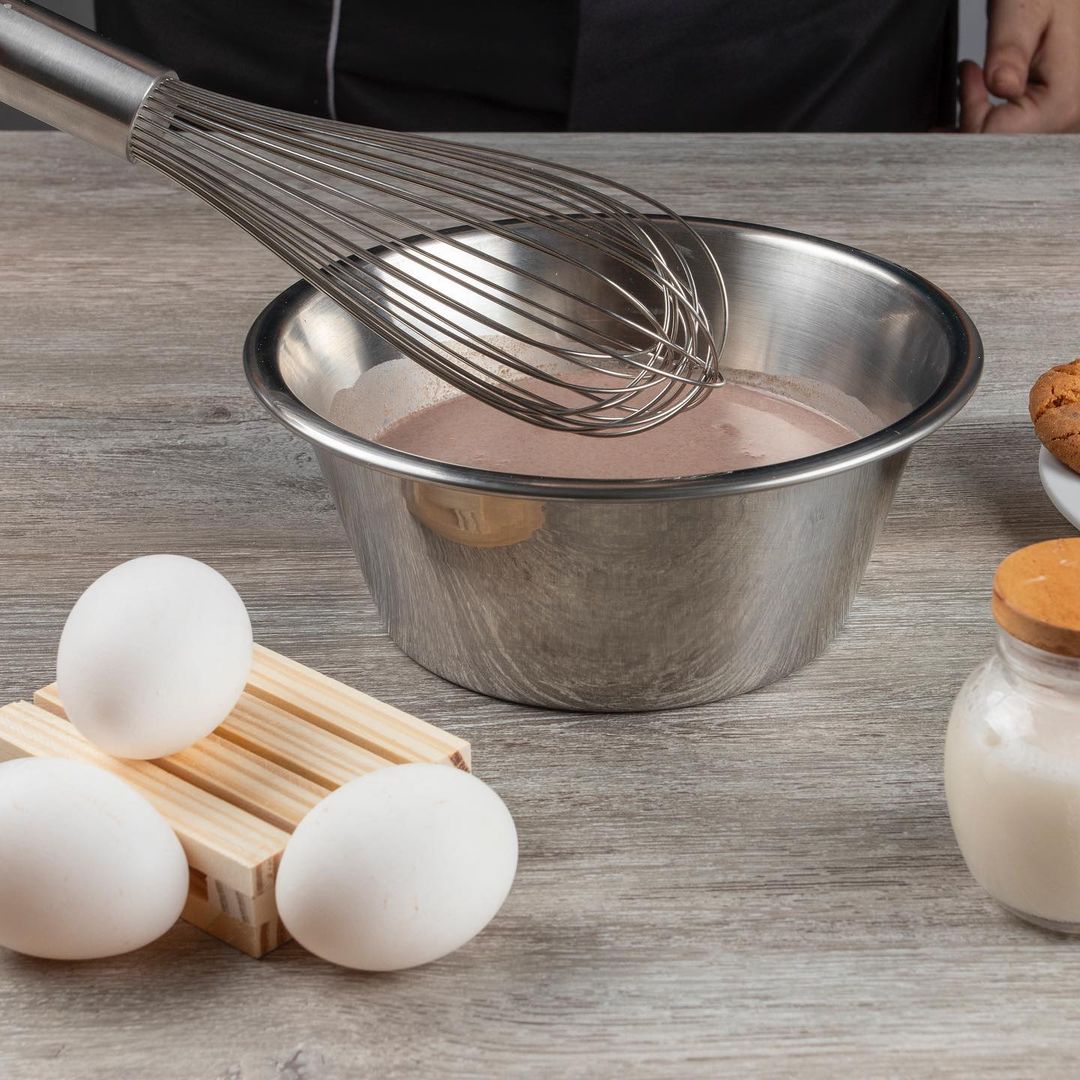 Feito com fio grosso, firme e resistente, este batedor de grau profissional é perfeito para o preparo de massas de bolos, claras em neve, chantilly e muitas outras receitas.