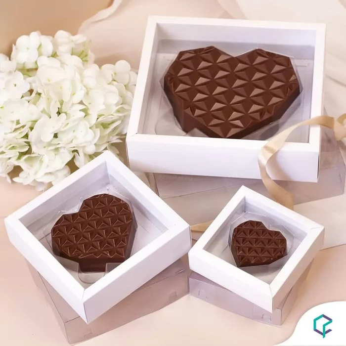 Com design exclusivo em formato de coração facetado, essa embalagem destaca seus produtos com charme e delicadeza.