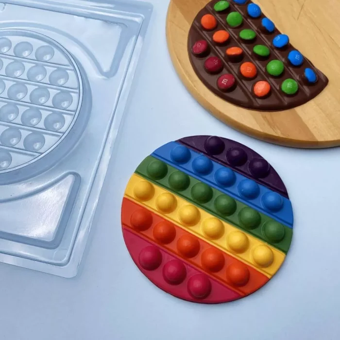 Forma de Chocolate Tablete/Barra Pop It Fidget Toy Redondo (200g) Acetato e Silicone - BWB
