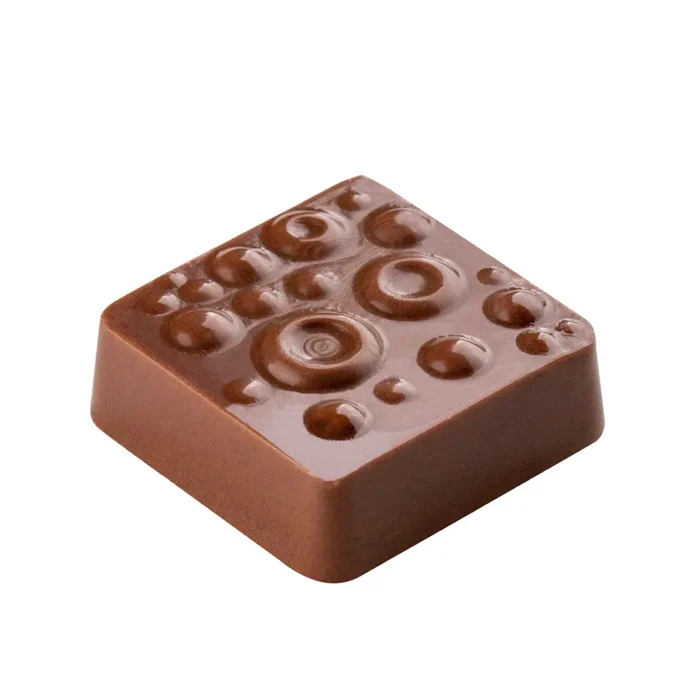 Este modelo faz belíssimos chocolates com o formato quadrado e desenhos esféricos em alto e baixo relevo .