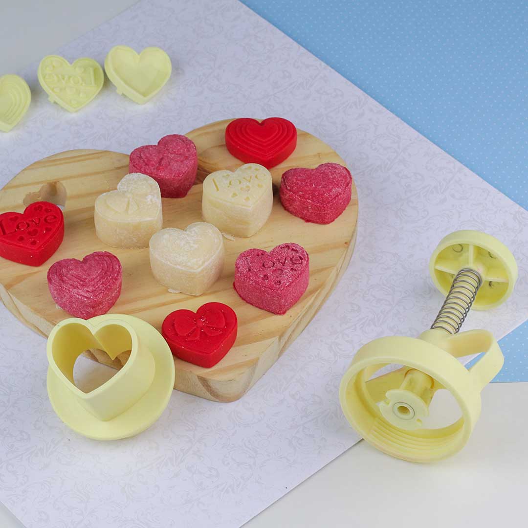 Brinque com o Kit Ejetor Max Corações para modelar seus doces e massas no formato de coração e, ao mesmo tempo, marcando o topo com a opção de 4 lindos desenhos!